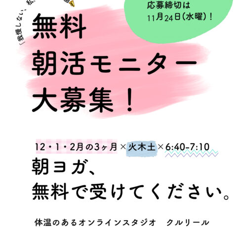 【無料朝活モニター募集!】 ー「我慢しない、私。」応援企画📣ー 🌈𝟭𝟮月〜...